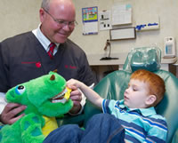 The first few visits are usually only examinations until the child matures and is ready for more. We love to see young faces in our practice. We are truly a family practice and see people of every age. One of our joys is seeing young patients grow and develop!