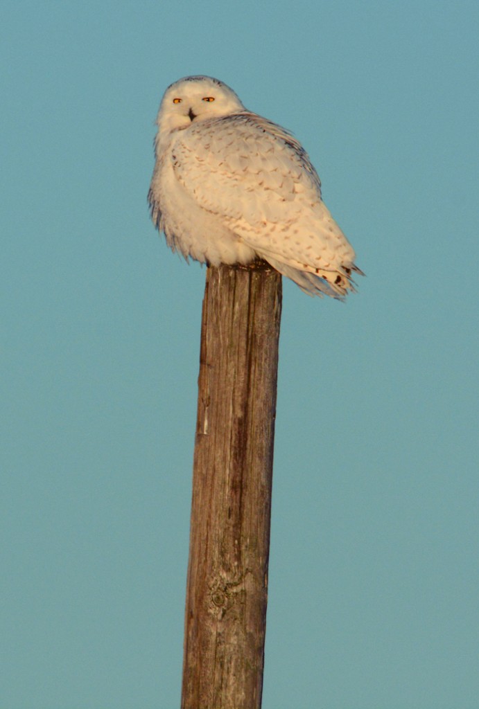 I moved in closer and closer, and even got a head shot from 20 feet away. The Snowy never flinched for a moment, and gave me one of the top 10 bird shoots of my life. I left her there with frozen tears on my face, as I knew that this God’s compelling answer to a prayer seeded in my childhood when my fascination with birds of prey started while watching nature shows with my dad. What a blessing that Snowy Owls rained down on us in the lower 48 all winter long, and so many people had magical moments like these, experiencing our Creator God through the piercing yellow orbs of a giant white fluffy owl sent all the way from the Arctic.