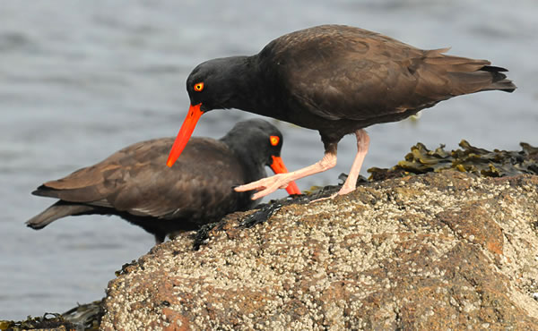 Back to the workshop, our group of four was treated to great opportunities on each day; even the overcast days held surprises. Most unusual was a male Anna’s Hummingbird (in Canada in February!) defending territory. Other treats were feeding Black Oystercatchers, a preening Common Merganser, Glacous-winged Gulls diving for huge clams, a friendly raft of the exquisite Harlequin Duck, and a Common Goldeneye hauled out on rock at close range.